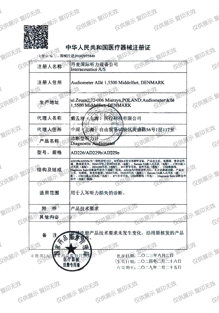 適用范圍:用于人耳聽(tīng)力損失的診斷。
